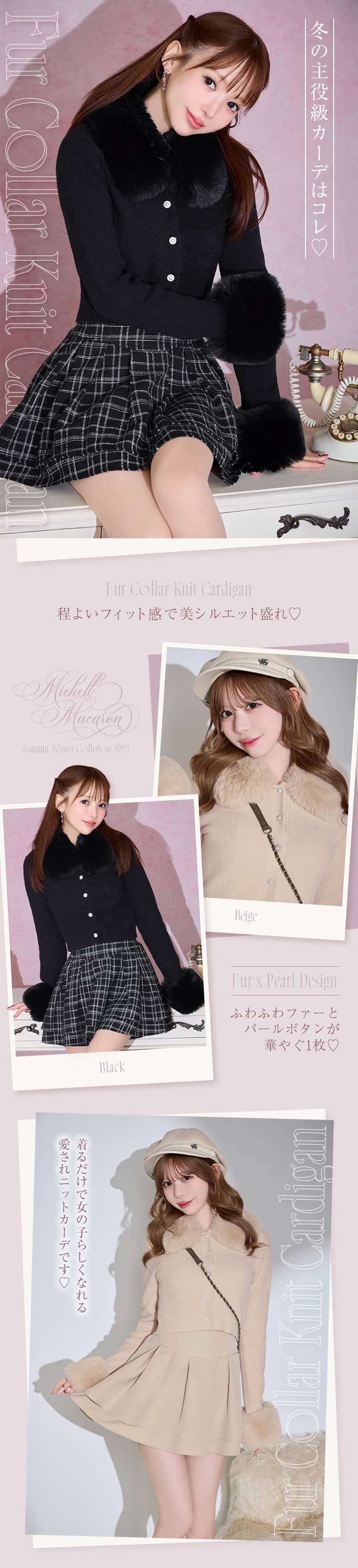 Official SNS Twitter Instagram メールマガジン LINE@ News 新作アイテム 発売前アイテム Information ブランドコンセプト フリーサイズ展開スタート♥ Category ワンピース アウター/ジャケット サロペット/コンビネゾン スカート トップス カーディガン セットアップ ボトムス シューズ バッグ ファッショングッズ ALLアイテム michellMacaron SFY0502C_ファーカラーニットカーデ SFY0502C_ファーカラーニットカーデ 2025.11.18