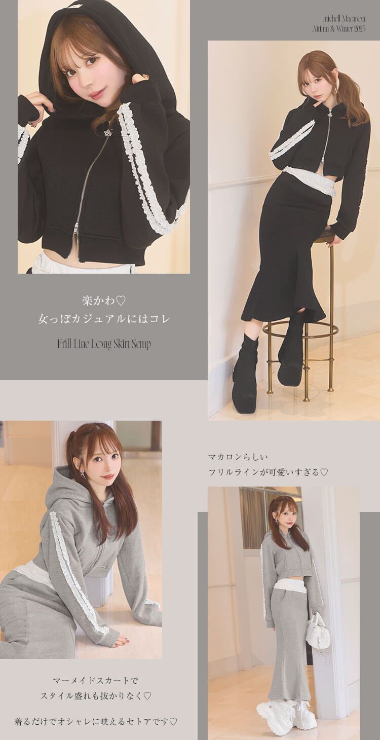Official SNS Twitter Instagram メールマガジン LINE@ News 新作アイテム 発売前アイテム Information ブランドコンセプト フリーサイズ展開スタート♥ Category ワンピース アウター/ジャケット サロペット/コンビネゾン スカート トップス カーディガン セットアップ ボトムス シューズ バッグ ファッショングッズ ALLアイテム michellMacaron SOA0028_フリルラインロングスカートセットアップ SOA0028_フリルラインロングスカートセットアップ 2025.10.17