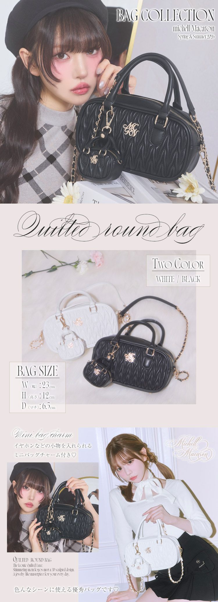 Official SNS Twitter Instagram メールマガジン LINE@ News 新作アイテム 発売前アイテム Information ブランドコンセプト フリーサイズ展開スタート♥ Category ワンピース アウター/ジャケット サロペット/コンビネゾン スカート トップス カーディガン セットアップ ボトムス シューズ バッグ ファッショングッズ ALLアイテム michellMacaron SJS0124X_ミニバッグ付きキルティングラウンドバッグ SJS0124X_ミニバッグ付きキルティングラウンドバッグ 2026.03.30