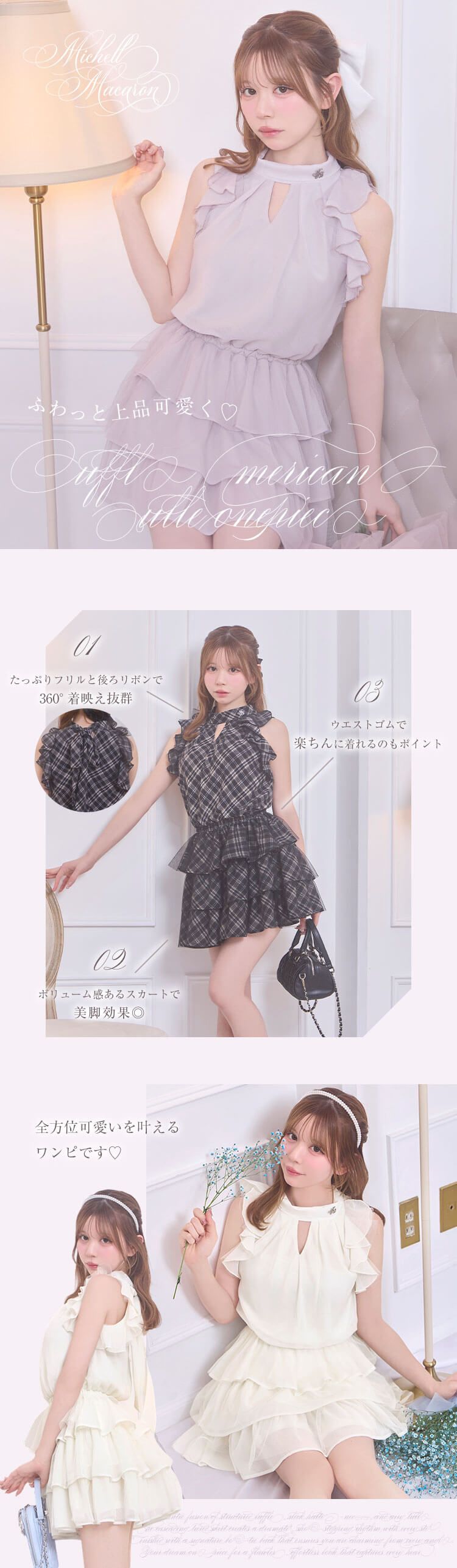 Official SNS Twitter Instagram メールマガジン LINE@ News 新作アイテム 発売前アイテム Information ブランドコンセプト フリーサイズ展開スタート♥ Category ワンピース アウター/ジャケット サロペット/コンビネゾン スカート トップス カーディガン セットアップ ボトムス シューズ バッグ ファッショングッズ ALLアイテム michellMacaron SFP0394C_ラッフルアメスリチュールワンピ SFP0394C_ラッフルアメスリチュールワンピ 2026.04.21