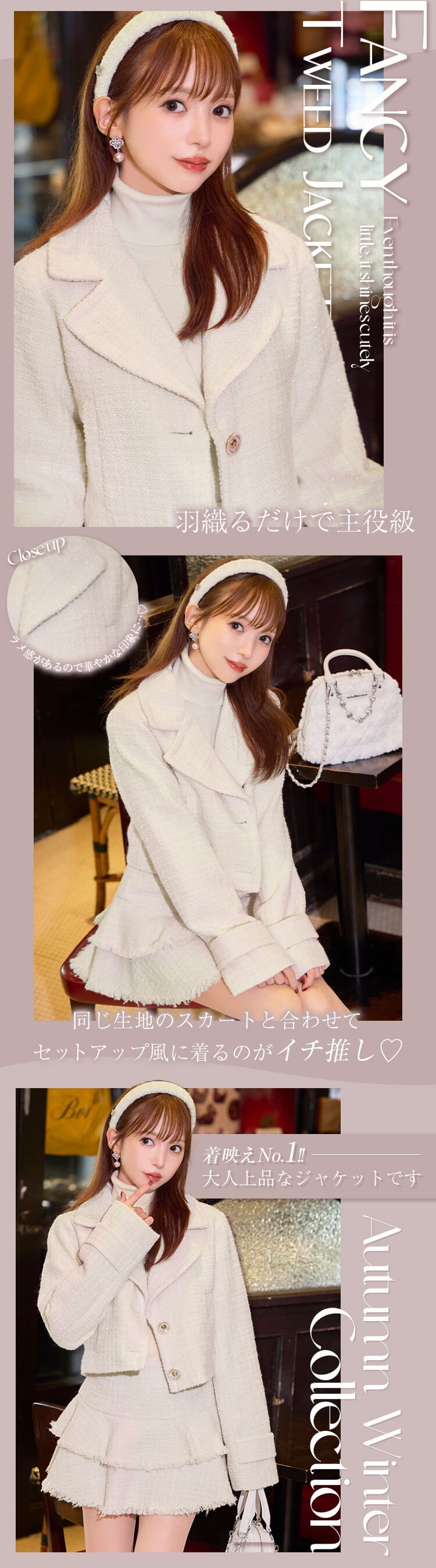 Official SNS Twitter Instagram メールマガジン LINE@ News 新作アイテム 発売前アイテム Information ブランドコンセプト フリーサイズ展開スタート♥ Category ワンピース アウター/ジャケット サロペット/コンビネゾン スカート トップス カーディガン セットアップ ボトムス シューズ バッグ ファッショングッズ ALLアイテム michellMacaron SFP0327C_ファンシーツイードジャケット SFP0327C_ファンシーツイードジャケット 2025.09.29