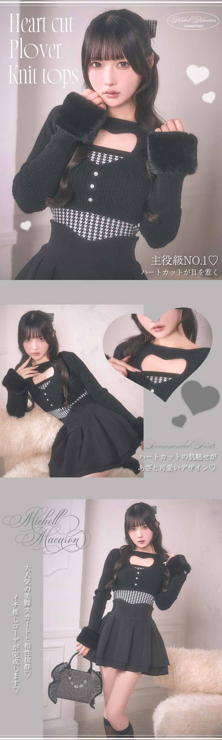 Official SNS Twitter Instagram メールマガジン LINE@ News 新作アイテム 発売前アイテム Information ブランドコンセプト フリーサイズ展開スタート♥ Category ワンピース アウター/ジャケット サロペット/コンビネゾン スカート トップス カーディガン セットアップ ボトムス シューズ バッグ ファッショングッズ ALLアイテム michellMacaron SJJ0361C_ハートカット千鳥ニットトップス SJJ0361C_ハートカット千鳥ニットトップス 2025.11.27