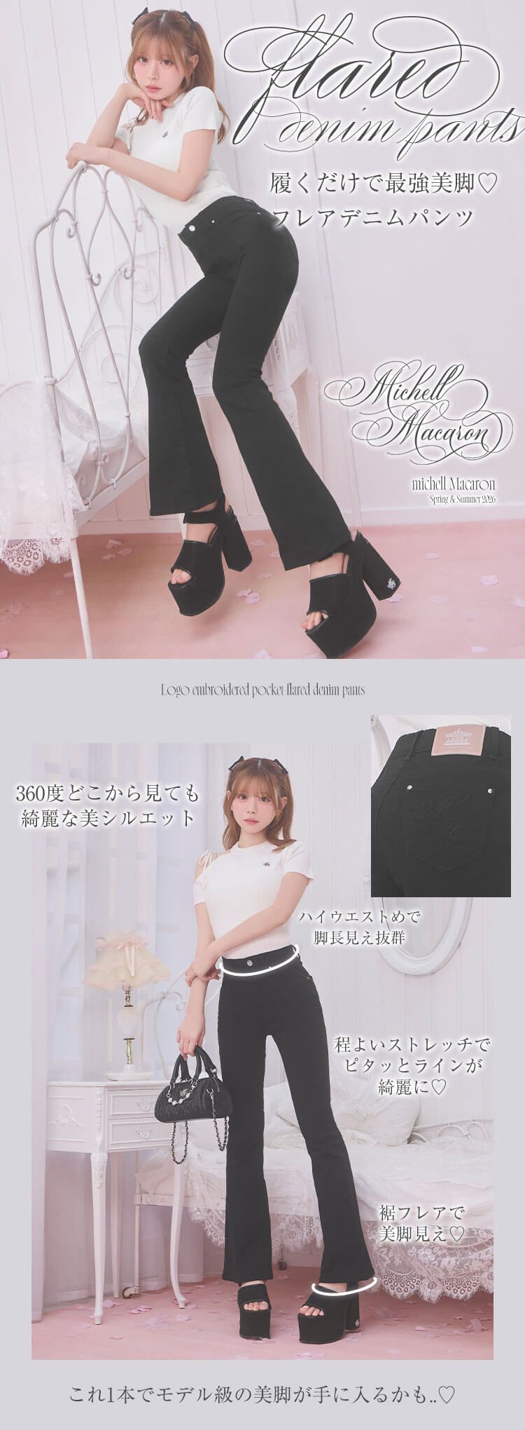 Official SNS Twitter Instagram メールマガジン LINE@ News 新作アイテム 発売前アイテム Information ブランドコンセプト フリーサイズ展開スタート♥ Category ワンピース アウター/ジャケット サロペット/コンビネゾン スカート トップス カーディガン セットアップ ボトムス シューズ バッグ ファッショングッズ ALLアイテム michellMacaron SAI0083フレアデニムパンツ SAI0083フレアデニムパンツ 2025.07.25