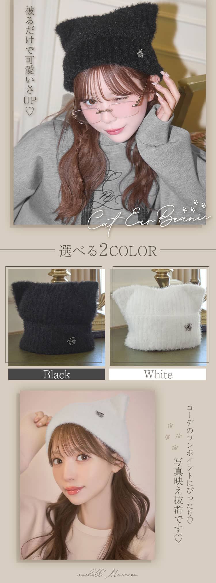 Official SNS Twitter Instagram メールマガジン LINE@ News 新作アイテム 発売前アイテム Information ブランドコンセプト フリーサイズ展開スタート♥ Category ワンピース アウター/ジャケット サロペット/コンビネゾン スカート トップス カーディガン セットアップ ボトムス シューズ バッグ ファッショングッズ ALLアイテム michellMacaron SMD0293_猫耳ビーニー SMD0293_猫耳ビーニー 2025.10.16