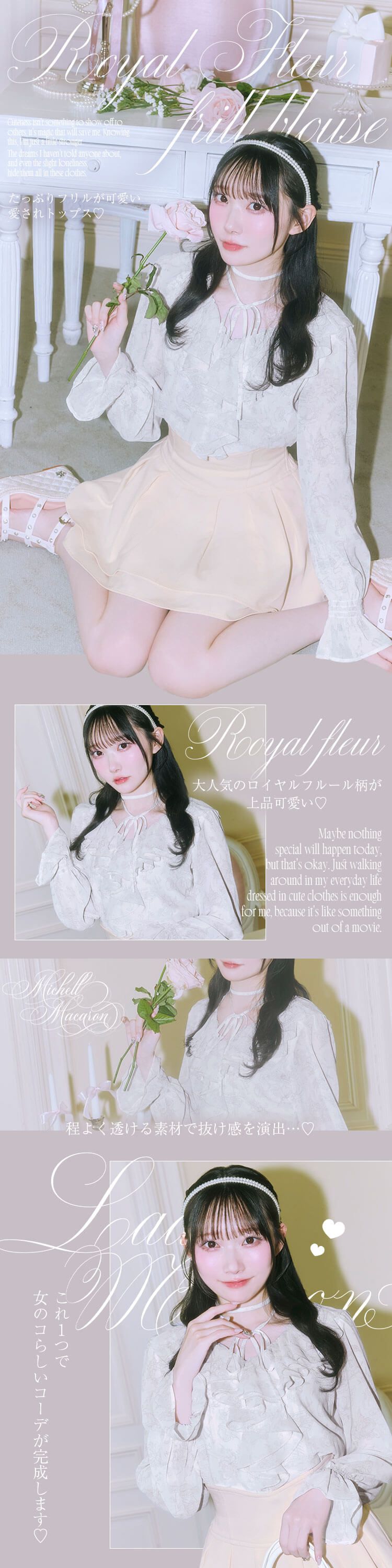 Official SNS Twitter Instagram メールマガジン LINE@ News 新作アイテム 発売前アイテム Information ブランドコンセプト フリーサイズ展開スタート♥ Category ワンピース アウター/ジャケット サロペット/コンビネゾン スカート トップス カーディガン セットアップ ボトムス シューズ バッグ ファッショングッズ ALLアイテム michellMacaron SFP0384C_ロイヤルフルールフリルブラウス SFP0384C_ロイヤルフルールフリルブラウス 2026.02.26