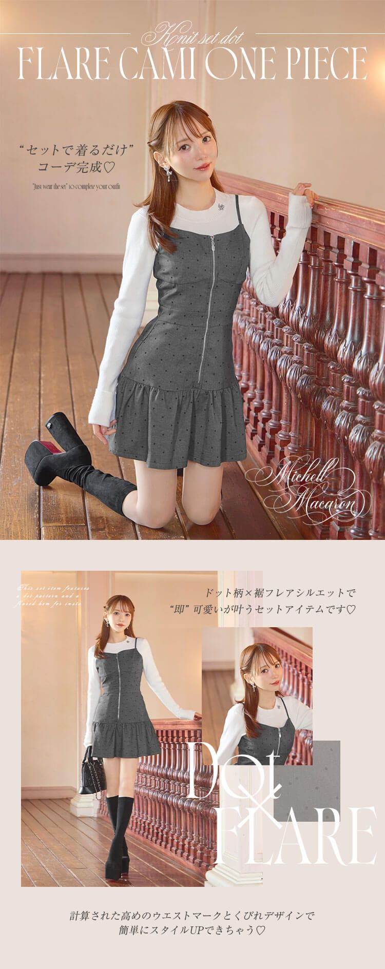 Official SNS Twitter Instagram メールマガジン LINE@ News 新作アイテム 発売前アイテム Information ブランドコンセプト フリーサイズ展開スタート♥ Category ワンピース アウター/ジャケット サロペット/コンビネゾン スカート トップス カーディガン セットアップ ボトムス シューズ バッグ ファッショングッズ ALLアイテム michellMacaron SJJ0390C_ニットsetドットフレアキャミワンピ SJJ0390C_ニットsetドットフレアキャミワンピ 2026.02.04