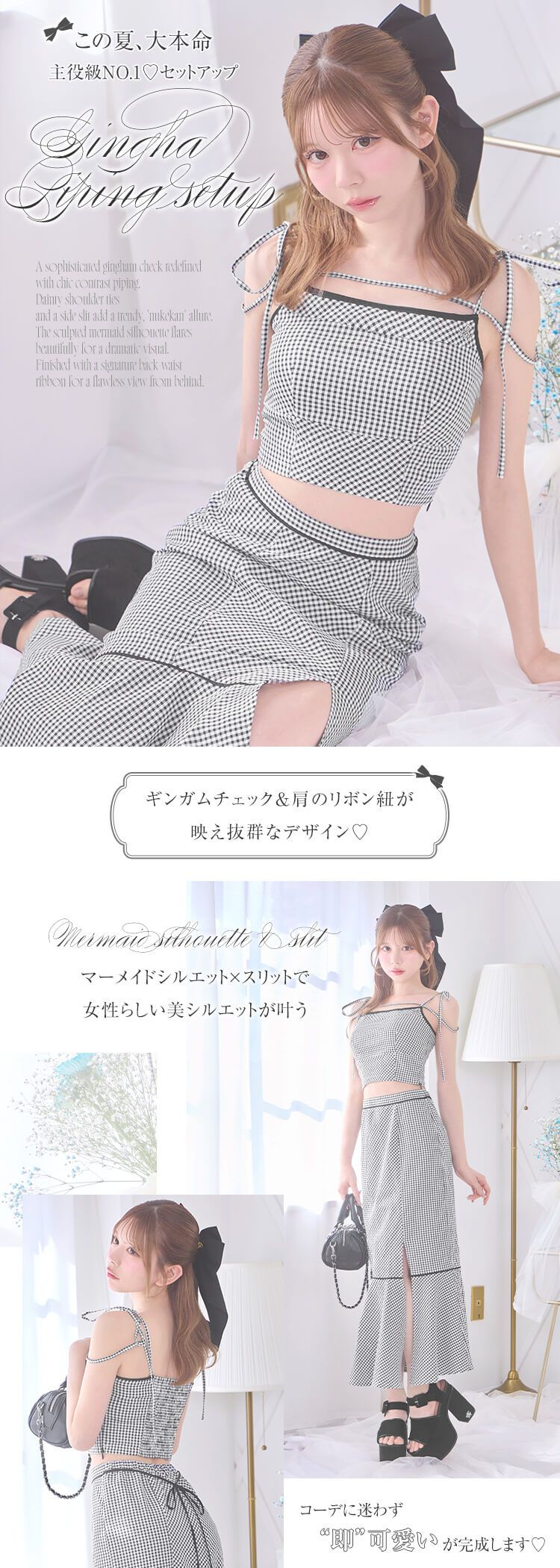Official SNS Twitter Instagram メールマガジン LINE@ News 新作アイテム 発売前アイテム Information ブランドコンセプト フリーサイズ展開スタート♥ Category ワンピース アウター/ジャケット サロペット/コンビネゾン スカート トップス カーディガン セットアップ ボトムス シューズ バッグ ファッショングッズ ALLアイテム michellMacaron SFP0388C_ギンガムパイピングセットアップ SFP0388C_ギンガムパイピングセットアップ 2026.04.14