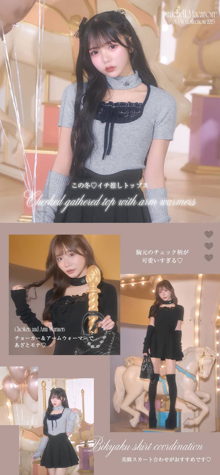 Official SNS Twitter Instagram メールマガジン LINE@ News 新作アイテム 発売前アイテム Information ブランドコンセプト フリーサイズ展開スタート♥ Category ワンピース アウター/ジャケット サロペット/コンビネゾン スカート トップス カーディガン セットアップ ボトムス シューズ バッグ ファッショングッズ ALLアイテム michellMacaron SFY0512C_アームウォーマー付きチェックギャザートップス SFY0512C_アームウォーマー付きチェックギャザートップス 2025.10.30