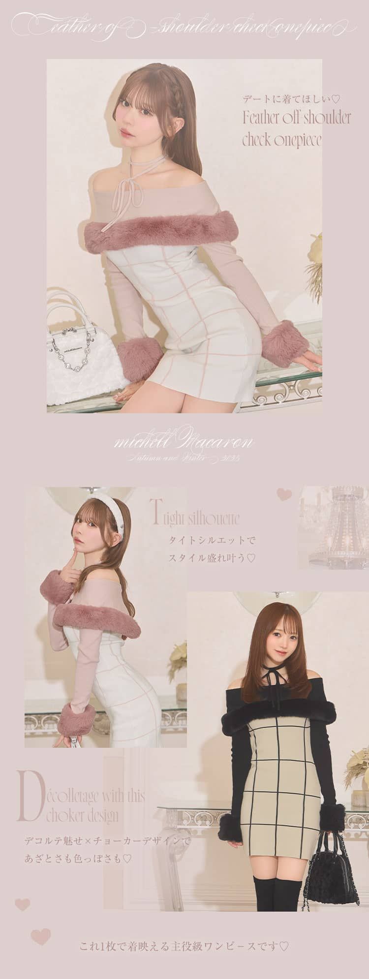 Official SNS Twitter Instagram メールマガジン LINE@ News 新作アイテム 発売前アイテム Information ブランドコンセプト フリーサイズ展開スタート♥ Category ワンピース アウター/ジャケット サロペット/コンビネゾン スカート トップス カーディガン セットアップ ボトムス シューズ バッグ ファッショングッズ ALLアイテム michellMacaron SJJ0304C_フェザーオフショルチェックワンピース SJJ0304C_フェザーオフショルチェックワンピース 2025.10.21