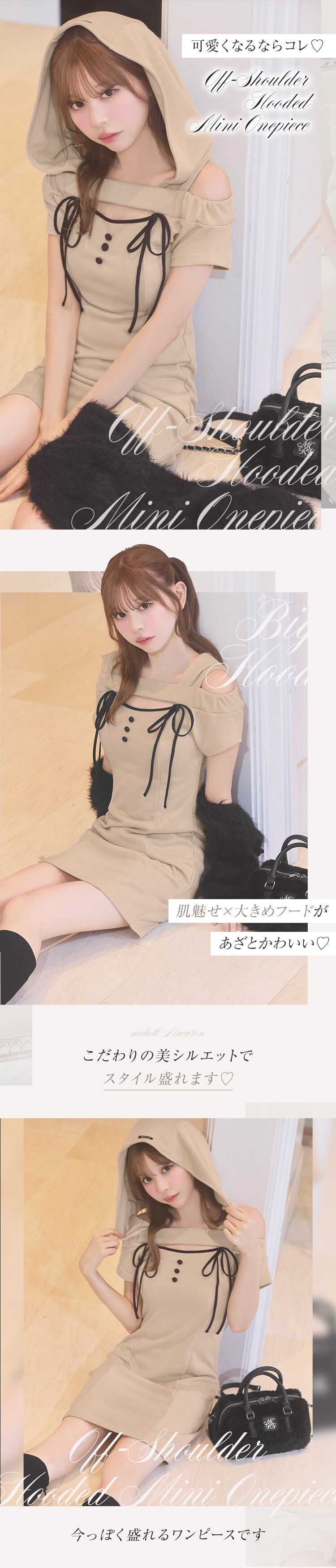 オフショルフードミニワンピ