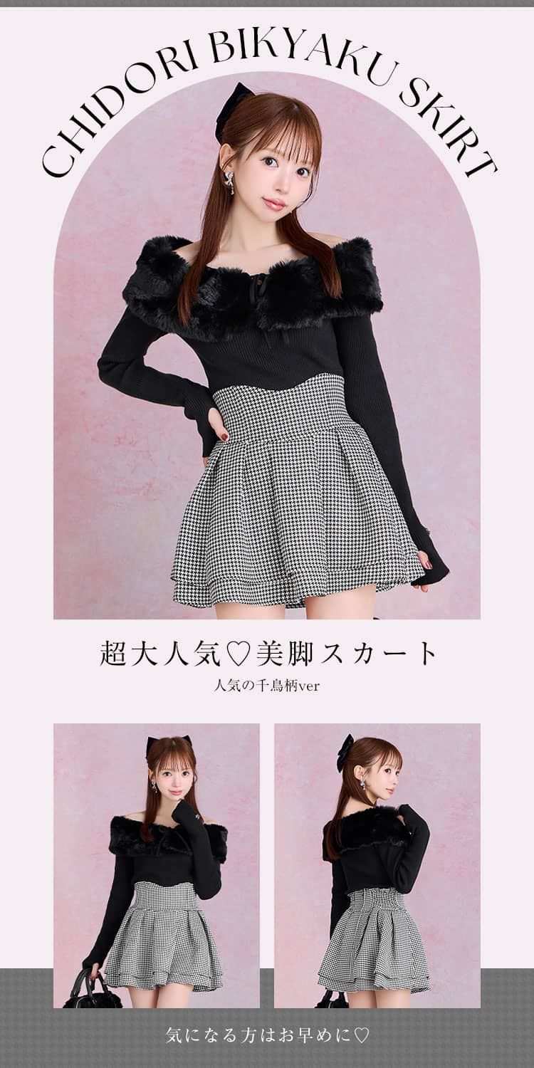 メリハリを効かせた千鳥柄で主役級な美脚スカート♡