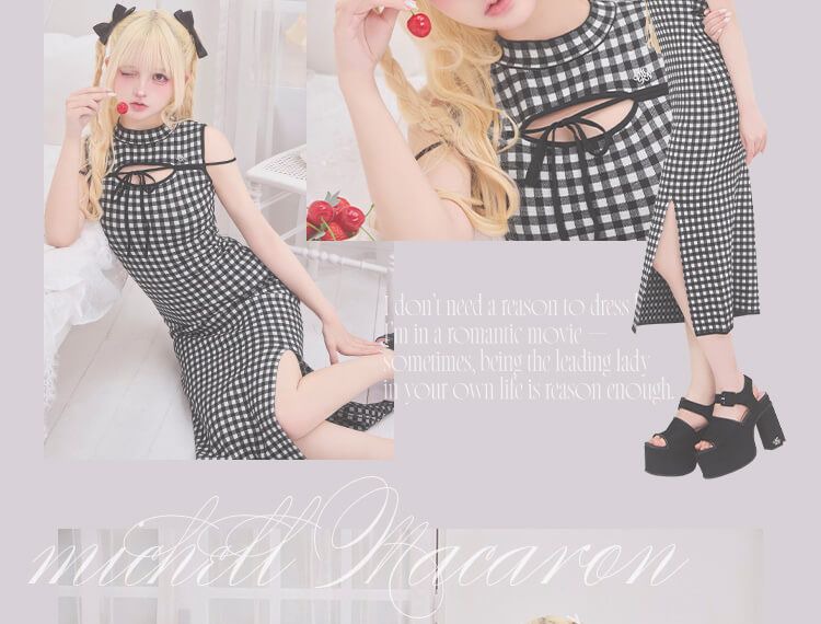 SJJ0429Cギンガムオープンリボンロングワンピ