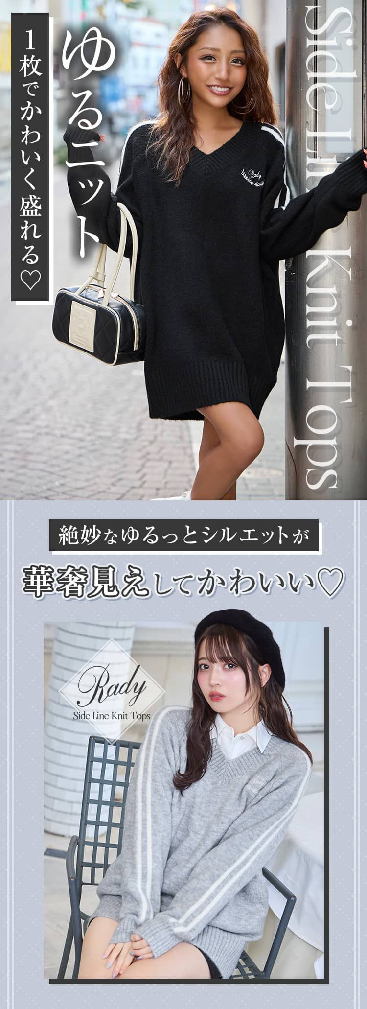 Category アウター トップス ワンピース ボトムス/スカート セットアップ シューズ バッグ インテリア コスメ ファッショングッズ ALLアイテム ・ ロゴデザイン不正使用による逮捕事例 ・ 地震の影響による一部地域配送遅延について Rady SU0107Xサイドラインニットトップス SU0107Xサイドラインニットトップス 2025.09.18