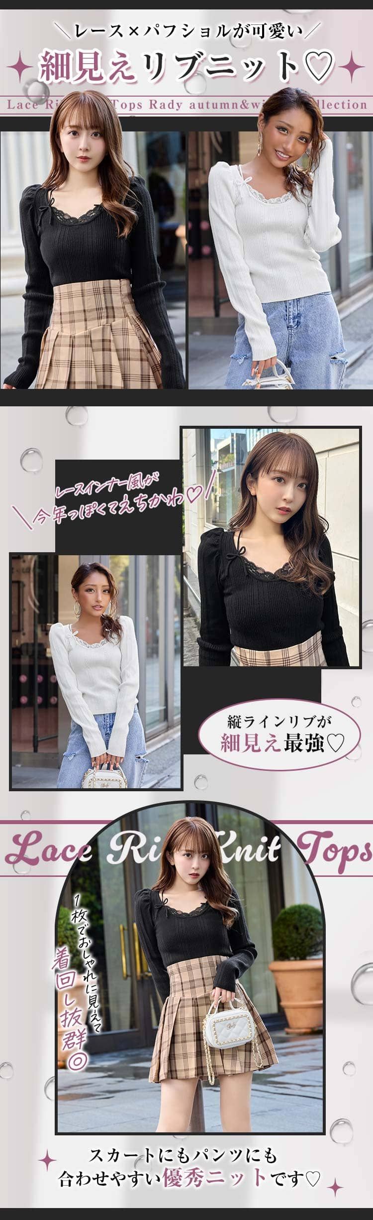 Category アウター トップス ワンピース ボトムス/スカート セットアップ シューズ バッグ インテリア コスメ ファッショングッズ ALLアイテム ・ ロゴデザイン不正使用による逮捕事例 ・ 地震の影響による一部地域配送遅延について Rady PR0076Cレースリブニットトップス PR0076Cレースリブニットトップス 2025.10.31