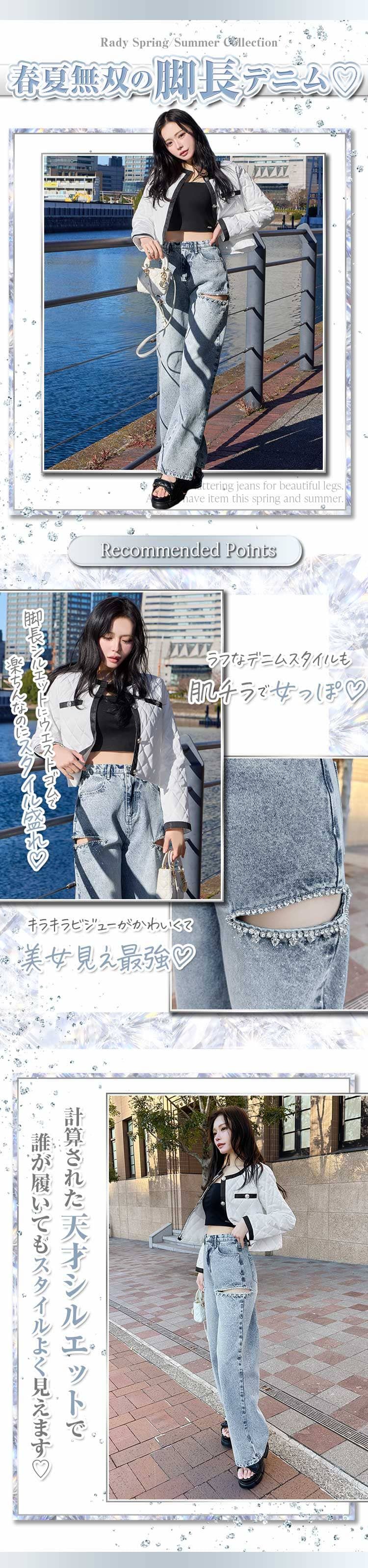 履くだけで一気に主役♡ビジューが映える盛れデニム。