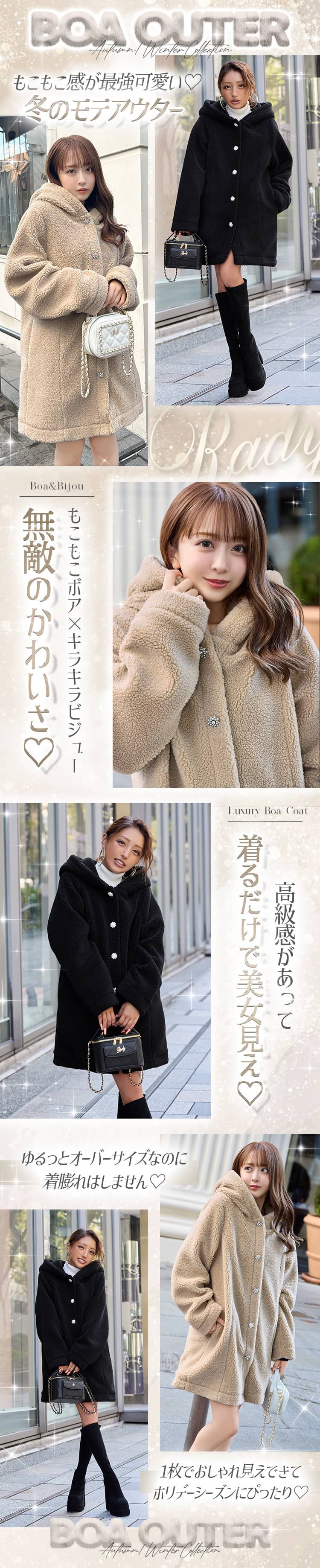 ビジューフーディボアアウター